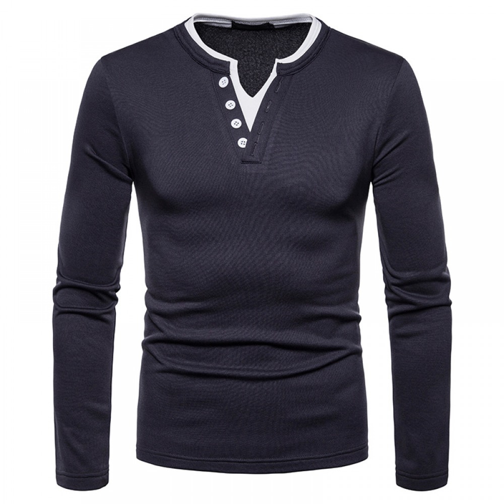 Men’s Plus Size Plus Velvet Warm Henley Collar Long-Sleeved T-Shirt Bottoming Shirt