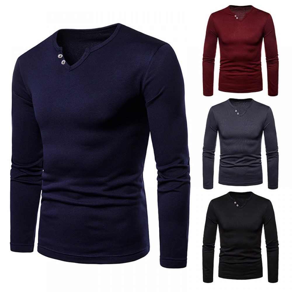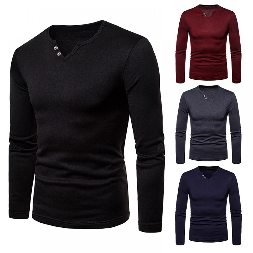 Men’s Plus Size Velvet Warm V-Neck Long-Sleeved T-Shirt Base Shirt