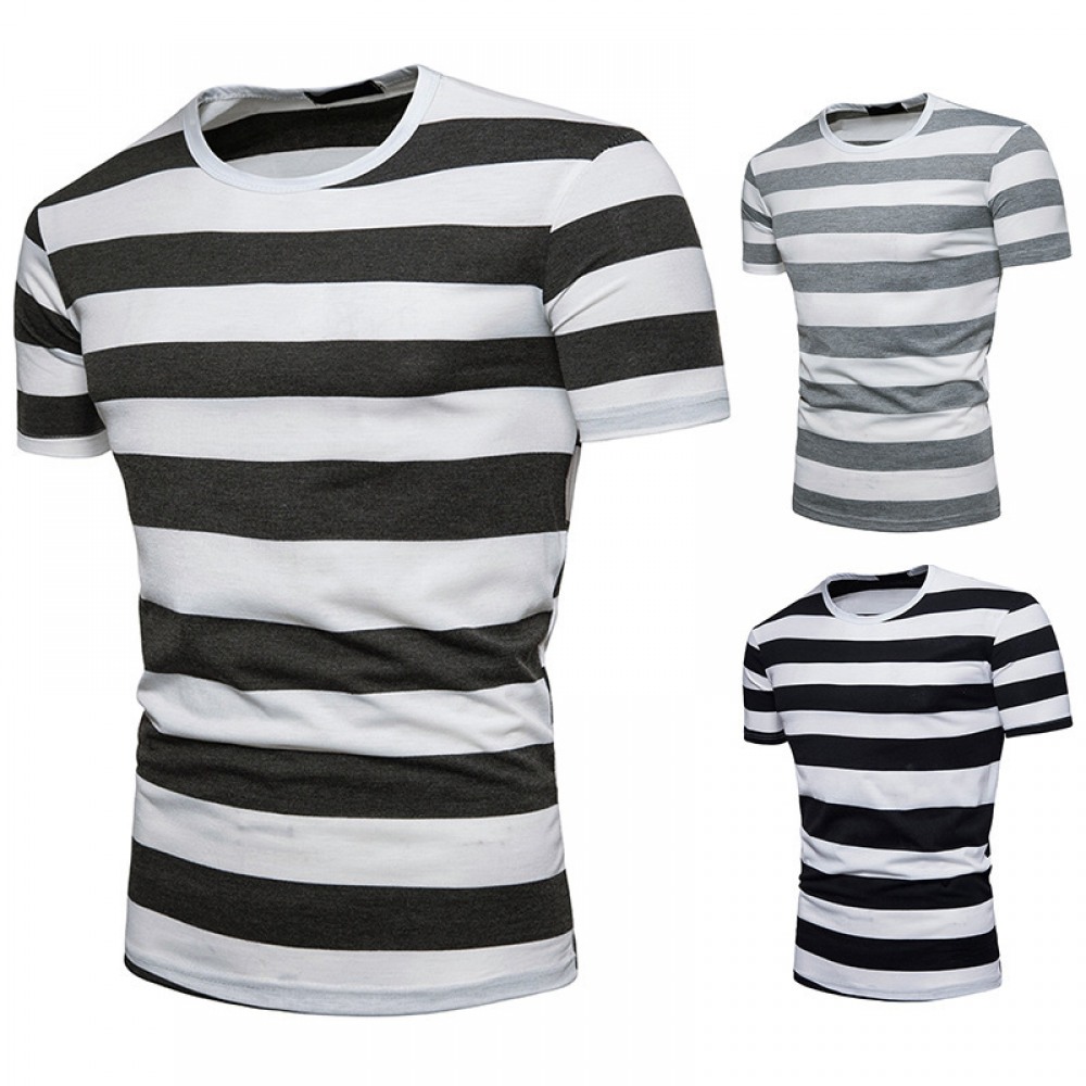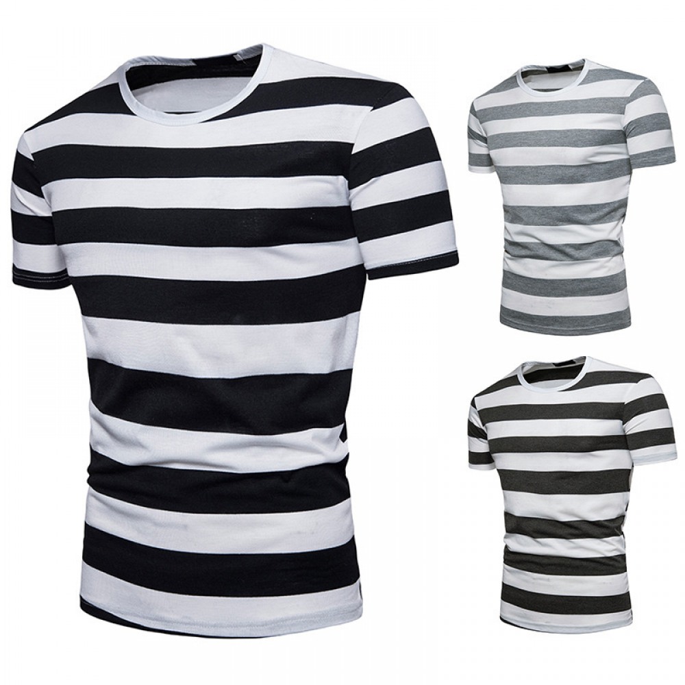 New Men’s European Size Thick Striped Short-Sleeved T-Shirt