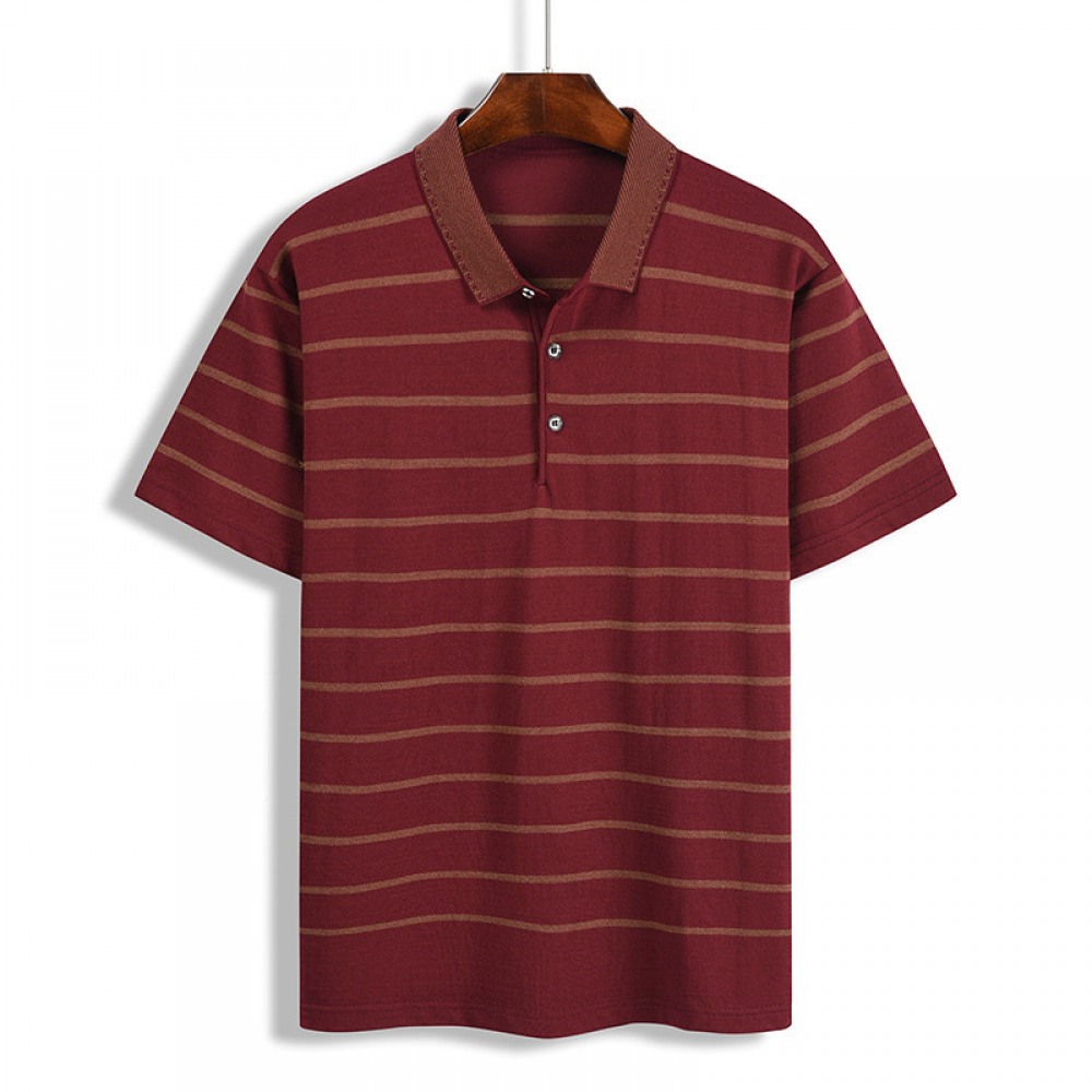 New Summer Men’s Pullover Loose Striped Lapel T-Shirt Mens Short Sleeve