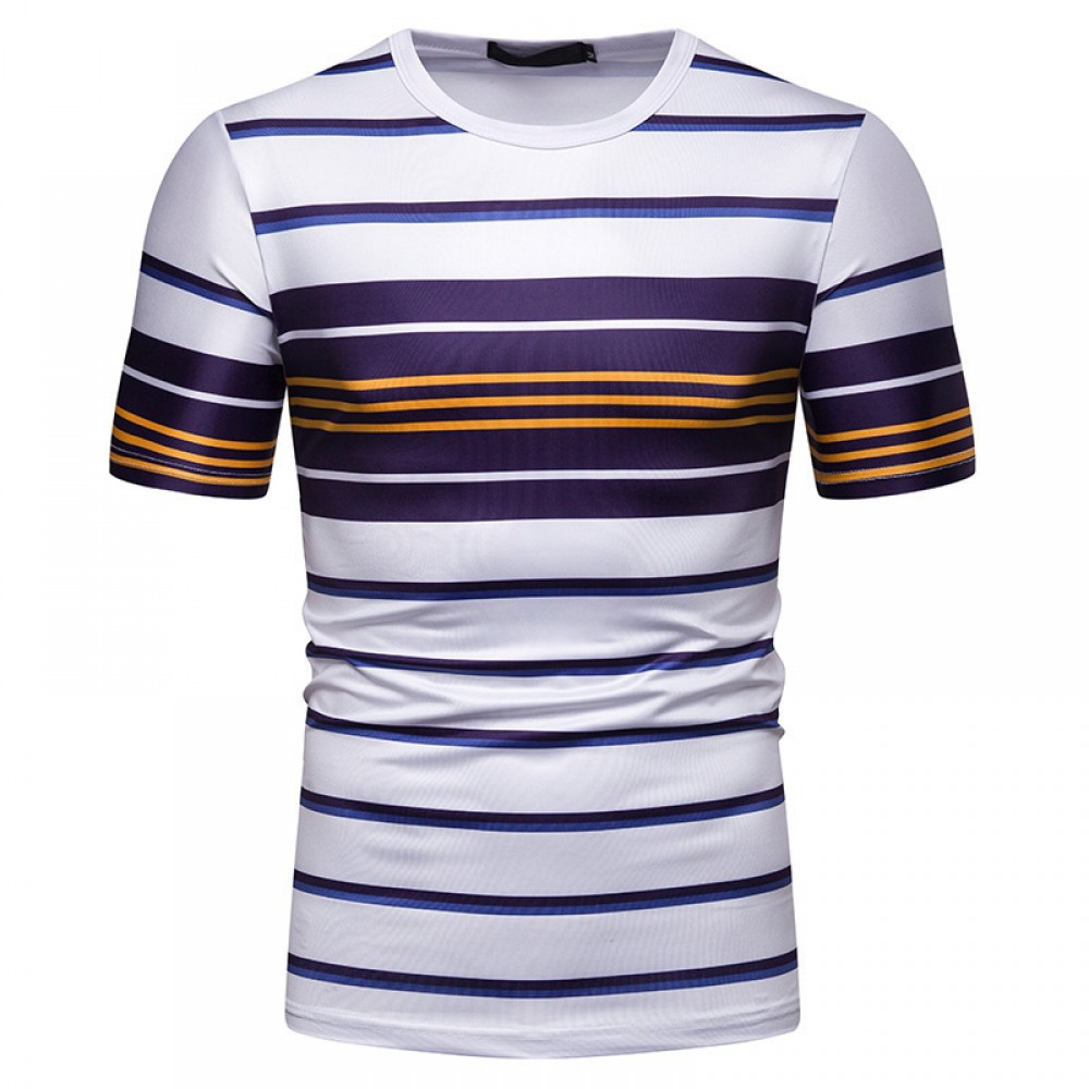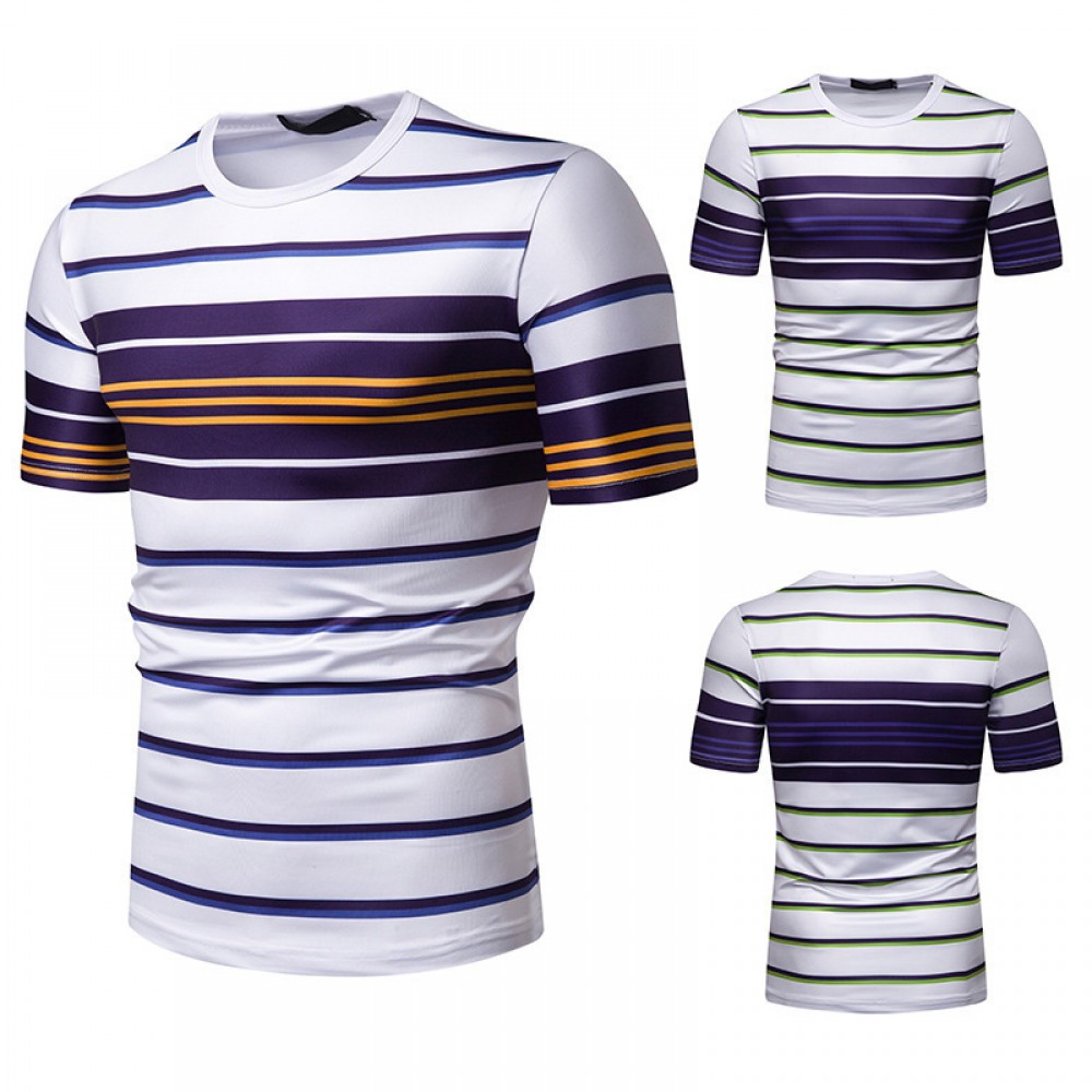 New Summer Men’s Short-Sleeved T-Shirt Mens Contrast Striped Slim Casual T-Shirt
